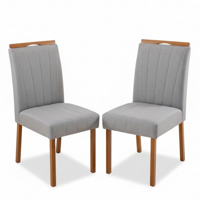 2 Cadeiras Isabela Linho Cinza 05 Madeira Maciça KM Decor – Entregue Montada