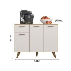 3{%%}Descrição{%%}Armário Cozinha Olinda Freijó/Off Paneleiro + Aéreo 1.05m + Balcão e Aéreo de Geladeira Ripado 3D Larg. 2.33m – Poliman