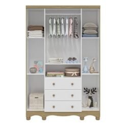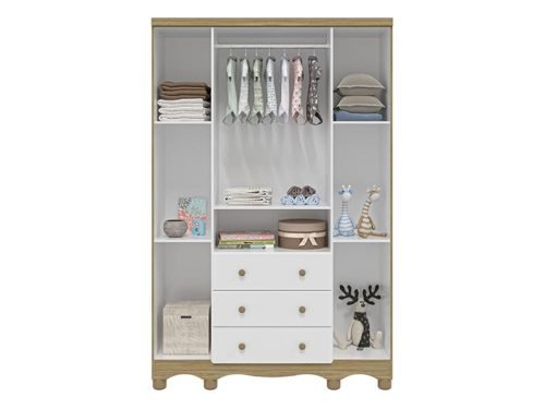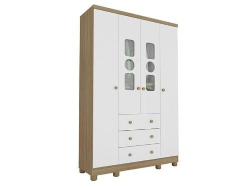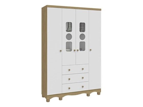 Armário Tedy 4 Portas Branco/Carvalho Medidas: Altura: 1.88 m Largura: 1.22 m Profundidade: 0.41 m Características Portas com PETG cristal Puxadores em ABS Cabideiro metálico Corrediças metálicas 100% MDF Pés em ABS inclusos * As imagens dos produtos são meramente ilustrativas. As cores podem mudar dependendo do brilho, tipo de câmera, ou até mesmo como as imagens são exibidas em computadores ou notebooks com telas de LCD ou LED, tablets ou smartphones, dependendo da quantidade de pixels, deixando as imagens com cores mais escuras ou mais claras.
