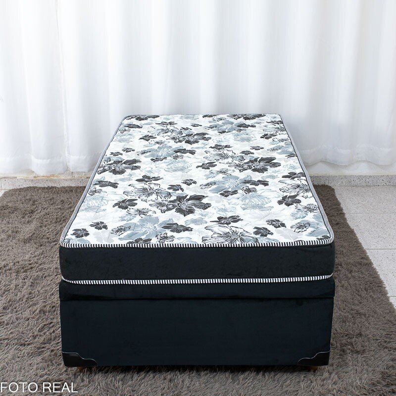 3{%%}Descrição{%%}Box Baú Solt. Pop Veludo Preto Nature + Colchão Solt. Santé 100% Espuma D33 88x188x51 Nosso Sonho
