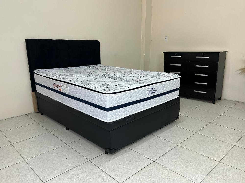 Combo Colchão Blue Molas Ensacadas Casal – 138x188x32 + Base Box Baú Classic casal – Preto Corino