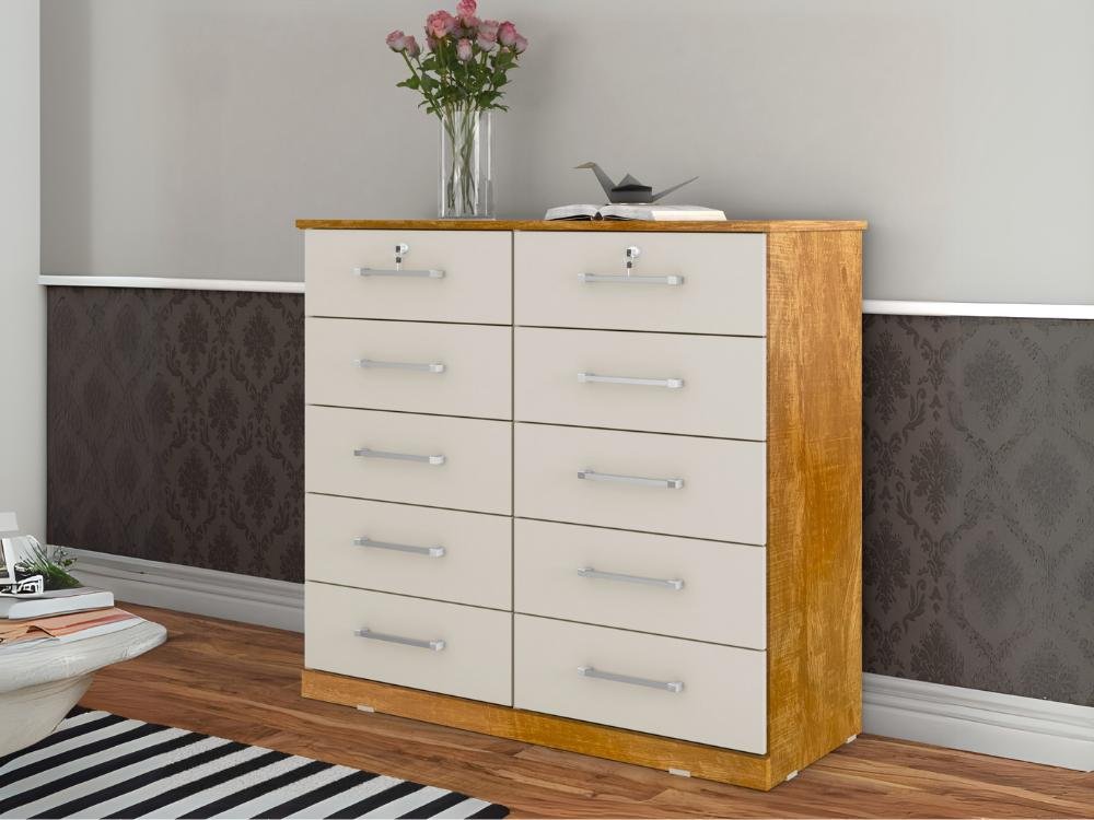 Cômoda 10 gavetas com chave Ref.: 06 – Cinamomo/Off White