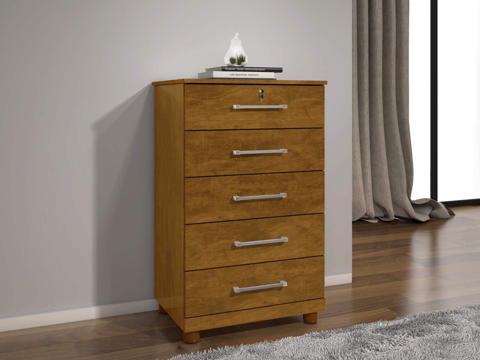 Cômoda 5 gavetas Ref.013 – Medida Altura: 0,97m Largura: 0,60m Profundidade: 0,42m As cômodas são peças incríveis para organizar seu quarto e facilitar o seu dia a dia, deixando os itens mais usados sempre ao seu alcance. A Cômoda 013 irá lhe proporcionar toda a organização e praticidade que o seu quarto precisa, aproveite! Descrição do produto 5 Gavetas sendo 1 com chave. *Pés não inclusos, vendidos separadamente. *As imagens dos produtos são meramente ilustrativas. As cores podem mudar dependendo do brilho, tipo de câmera, ou até mesmo como as imagens são exibidas em computadores ou notebooks com telas de LCD ou LED, tablets ou smartphones, dependendo da quantidade de pixels, deixando as imagens com cores mais escuras ou mais claras.