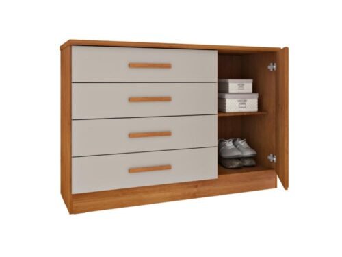 Cômoda Sapateira Barcelona 4 Gavetas 1 Porta Tcil – Cinamomo/Off White