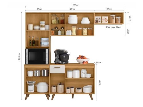 A Cozinha Completa Olinda entrega beleza e estilo para qualquer cozinha, trazendo também mais organização e espaço para armazenamento de alimentos e utensílios.