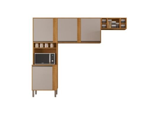 A Cozinha Pérola da Salleto é um conjunto de móveis de alta qualidade e design moderno, composto por três peças principais: Armário Aéreo 1,20m , Torre – Quente e Armário Aéreo Geladeira. Oferece amplo espaço de armazenamento e organização, com acabamento resistente e durável, tornando-se uma escolha prática e elegante para a sua cozinha.