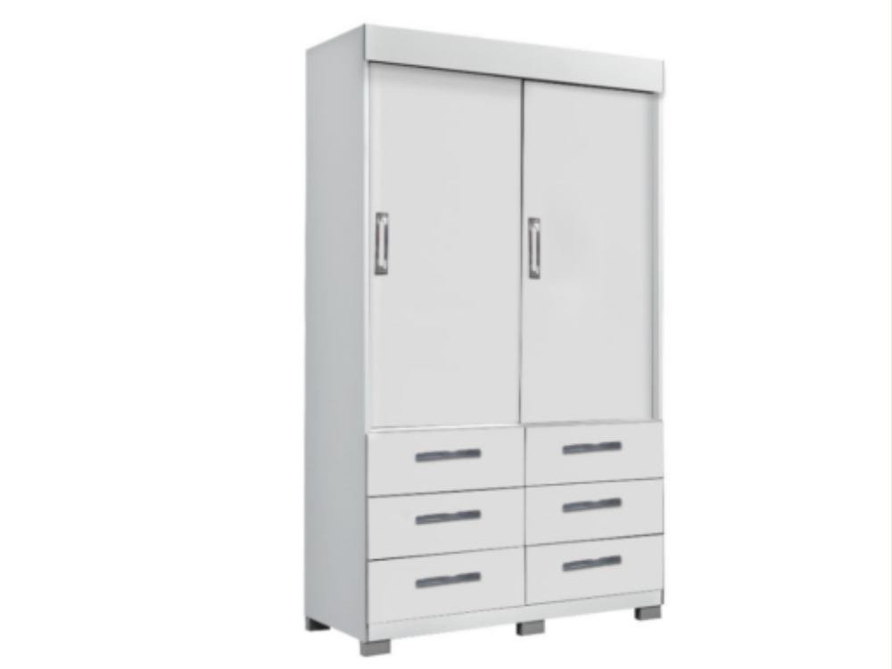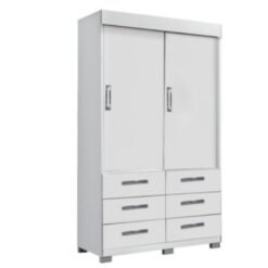 Guarda-Roupa Buzios 2 portas de correr com espelho 6 gavetas – Branco