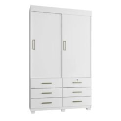 Guarda-Roupa Buzios 2 portas de correr Sem espelho 6 gavetas – Branco