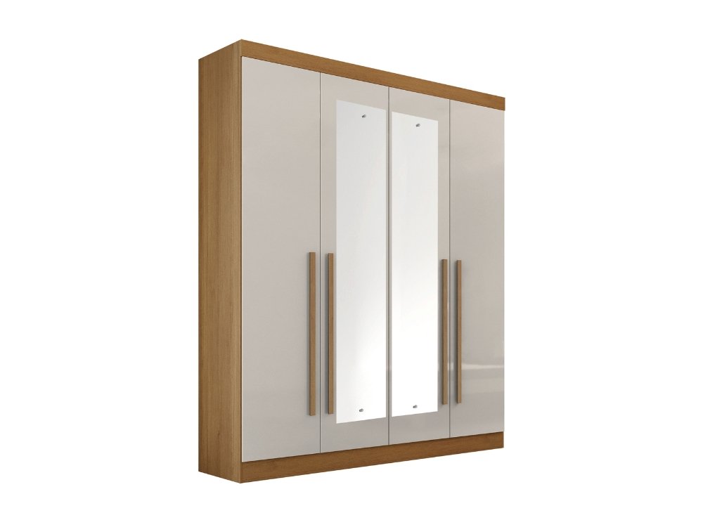 Guarda-Roupa Da Vinci Plus c/ espelho 4 portas e 3 gavetas – Cinamomo/Off White