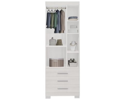 Guarda-Roupa Floripa 2 portas – Branco Altura: 2,00 Largura: 0,61 Profundidade: 0,46 O Guarda-Roupa Floripa é ideal pra quem gosta de organização e tem pouco espaço, pois conta com duas portas com cabideiro e prateleiras internas para guardar suas roupas e objetos mais 3 gavetas espaçosas. Descrição do produto 03 gavetas com corrediças metálicas 02 portas Cabideiro Amplo espaço interno com prateleiras *As imagens dos produtos são meramente ilustrativas. As cores podem mudar dependendo do brilho, tipo de câmera, ou até mesmo como as imagens são exibidas em computadores ou notebooks com telas de LCD ou LED, tablets ou smartphones, dependendo da quantidade de pixels, deixando as imagens com cores mais escuras ou mais claras.