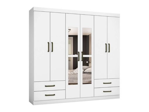 Guarda-Roupa Hércules c/ espelho 6 portas e 4 gavetas – Branco