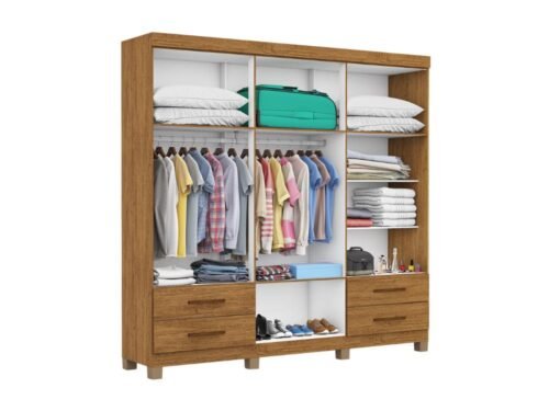 O Guarda Roupa Hércules é capaz de proporcional estilo e elegância ao ambiente por menor que ele seja. Com 2.07m de altura, 1.77m de largura e 0.47cm de profundidade combinado com 4 gavetas, 6 prateleiras e 1 cabideiro, deixa o produto com uma ótima divisão para acomodar todas as suas roupas da melhor forma possível.