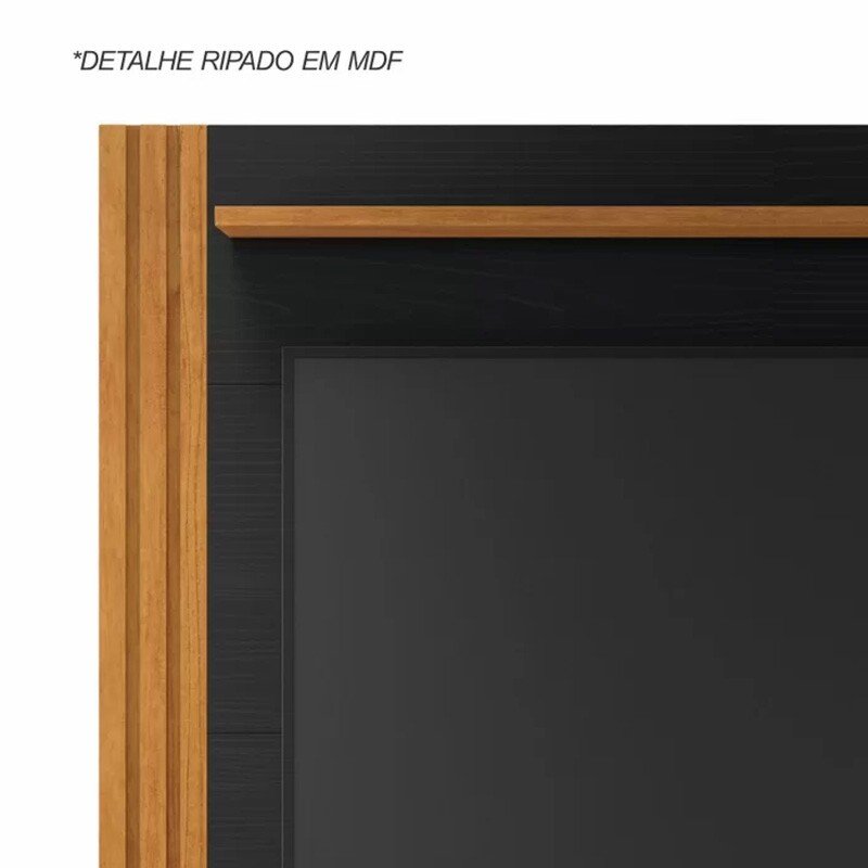 3{%%}Descrição{%%}Home Bálsamo Larg. 1.50m Cinamomo/Preto C/ Detalhe Ripado TV até 65″ – JCM