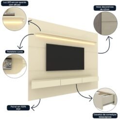 3{%%}Descrição{%%}Home Royal Larg. 2.19m C/Led Off e Nicho 100% MDF para TV até 85″ – Gelius