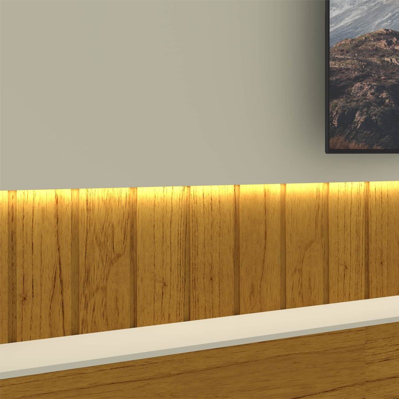 3{%%}Descrição{%%}Home Suspenso Soberano Reflecta Larg. 2.30m Nature/Off C/Led 100% MDF para TV até 85″ – Gelius