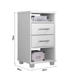 3{%%}Descrição{%%}Mesa de Cabeceira Valente Branco 2 Gavetas Larg. 0.45m – Rud Rack