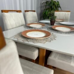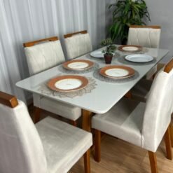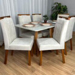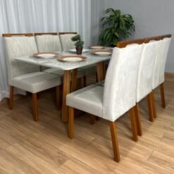 Mesa de Jantar Bali 1.60×0.80 Com 6 Cadeiras Isa – Minas Plac/ Ouro decor