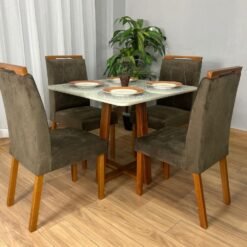 Mesa de Jantar Bali 0.90×0.90 Com 4 Cadeiras Isa – Minas Plac/Ouro Decor