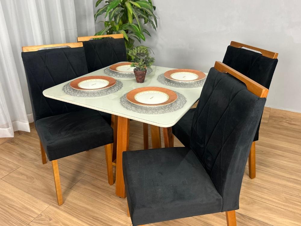 Mesa de Jantar Bali 0.90×0.90 Com 4 Cadeiras Isa – Minas Plac/Ouro Decor
