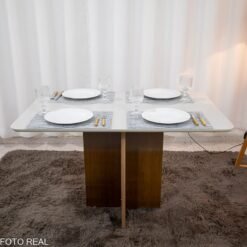 3{%%}Descrição{%%}Mesa de Jantar Moscou 120×80 Vidro Off/Base Cinamomo – Minas Plac