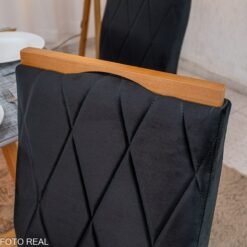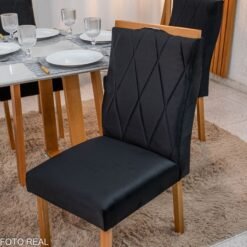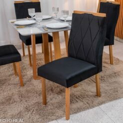 3{%%}Descrição#Como Montar{%%}Mesa de Jantar Pedro 90×90 Vidro Off/Base Madeira + 4 Cad. Lisboa Veludo Preto 504 Madeira Art Assento – Entregue Montada