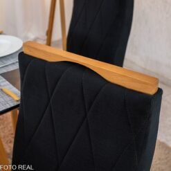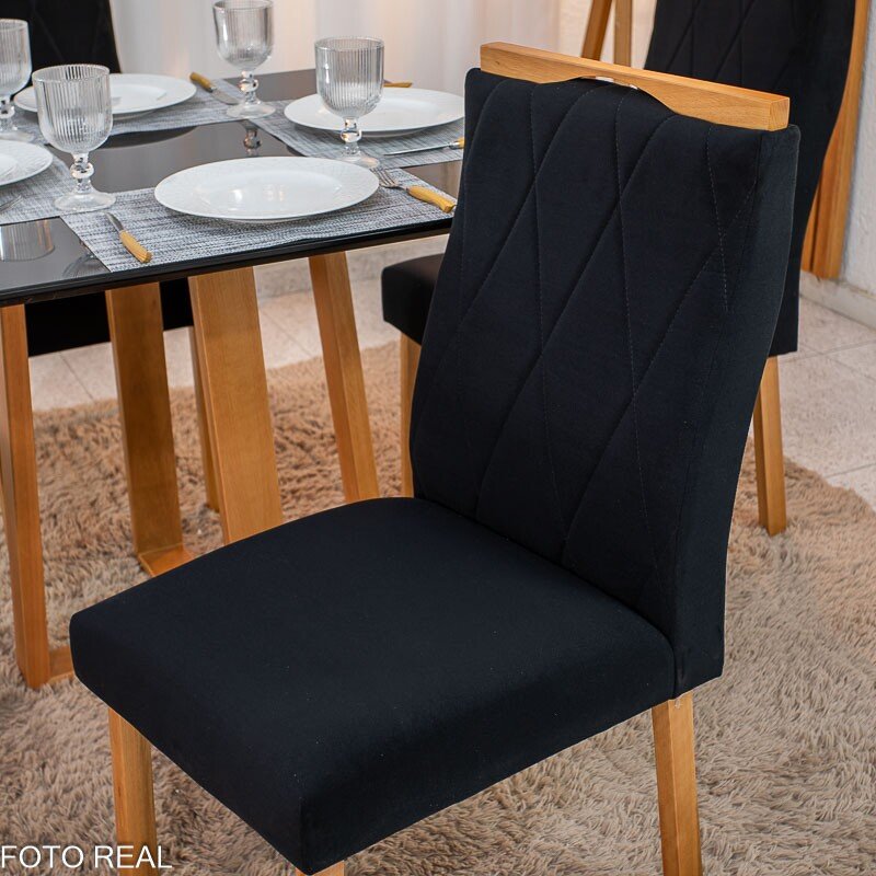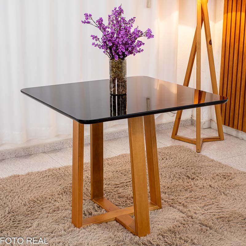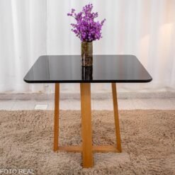 3{%%}Descrição#Como Montar{%%}Mesa de Jantar Pedro 90×90 Vidro Preto/Base Madeira + 4 Cad. Lisboa Veludo Preto 504 Madeira Art Assento – Entregue Montada