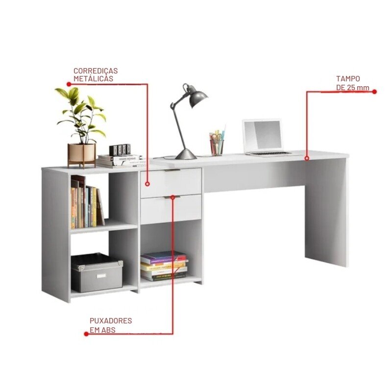 3{%%}Descrição#Shorts{%%}Mesa Office NT 2060 Branco 2 Gavetas Larg. 2.00m – Notável