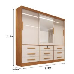 3{%%}Descrição{%%}Roupeiro Casal Turim Nature/Off 3 Portas 9 Gavetas C/ 1 Espelho 100% MDF Larg. 2.11 – Bianchi