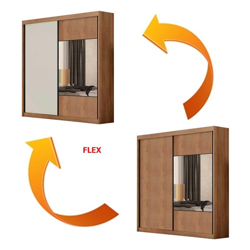 3{%%}Descrição{%%}Roupeiro Casal Versatto Cumaru/Fendi C/Espelho 2 Portas 6 Gavetas 100% MDF Larg. 2.08m Flex – Novo Horizonte
