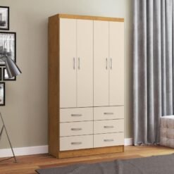 3{%%}Descrição{%%}Roupeiro Nápoles Larg. 0.93m Noce TX/Pérola 4 Portas 6 Gavetas – San Marino