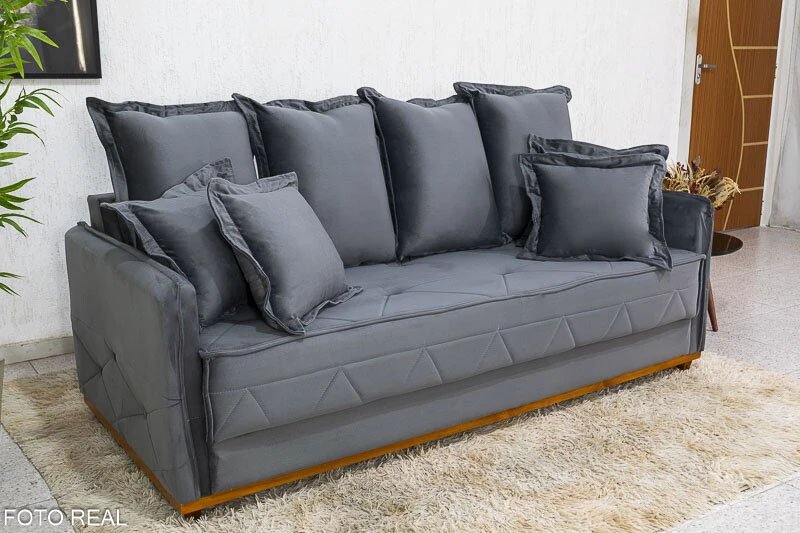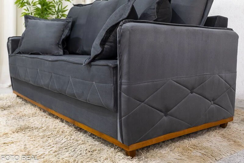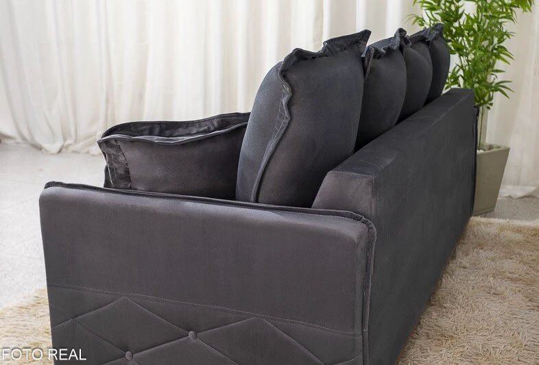 3{%%}Descrição{%%}Sofá 3 lugares Vican Veludo Cinza 5001 Larg. 2.00m – Molas Bonnel