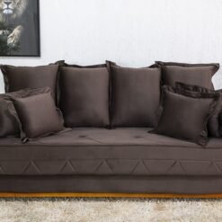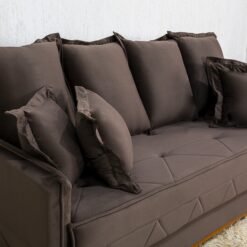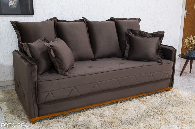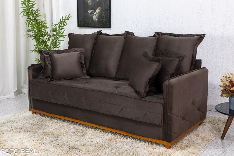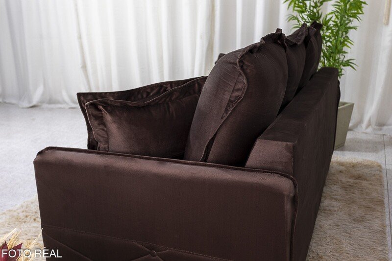 3{%%}Descrição{%%}Sofá 3 lugares Vican Veludo Marrom 5004 Larg. 2.00m – Molas Bonnel