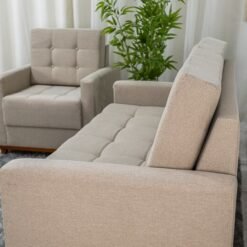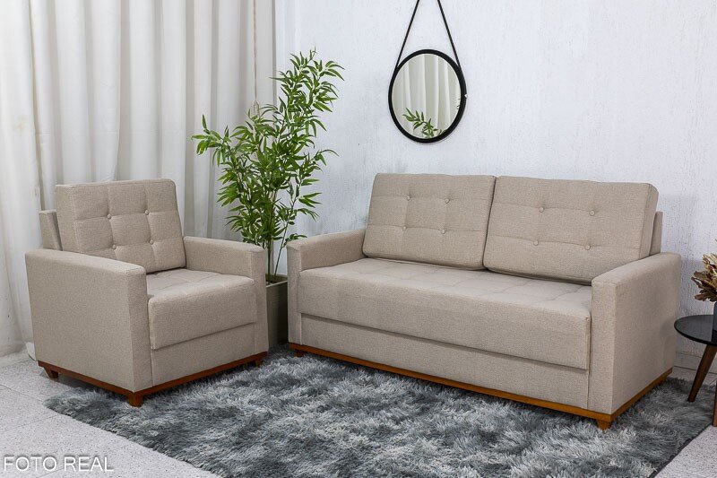 3{%%}Descrição{%%}Sofá Áustria 3 Lugares + Poltrona Áustria Bege A57