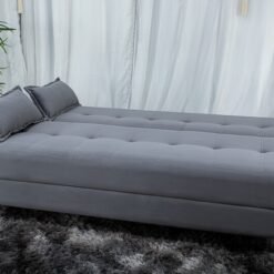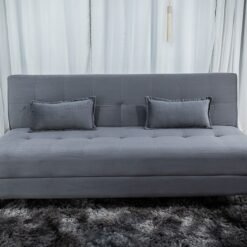 3{%%}Descrição{%%}Sofá Cama Arpoador Veludo Cinza Larg. 1.85m