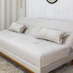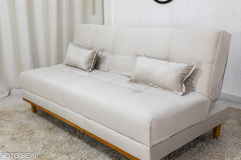 3{%%}Descrição{%%}Sofá Cama Madrid Veludo Bege 2269 Larg. 1.80m – Molas Bonnel