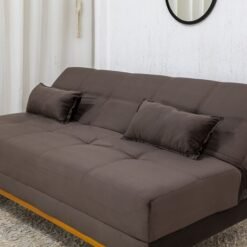 3{%%}Descrição{%%}Sofá Cama Madrid Veludo Marrom 2263 Larg. 1.80m – Molas Bonnel