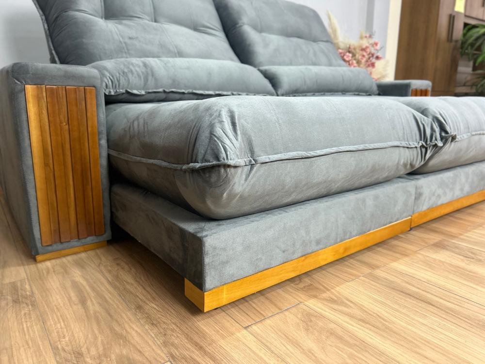 Resvestido com espuma d28, com detralhe ripado com madeira tauari.