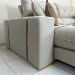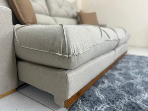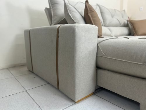 Braço reto com detalhe em courino com 20 cm de largura.