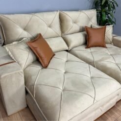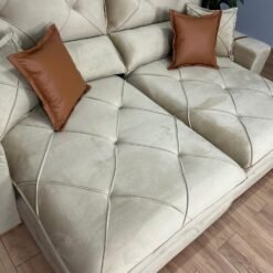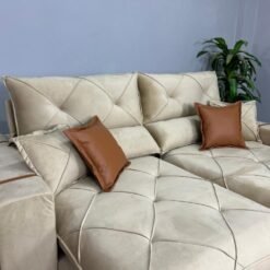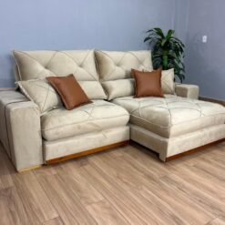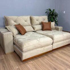 Sofá Retrátil e Reclinável Gran Bello 2.50m – Bege Veludo