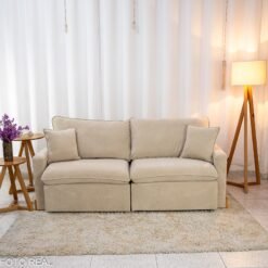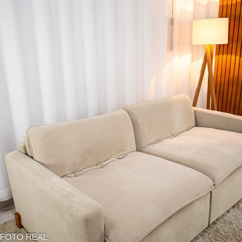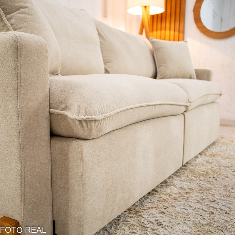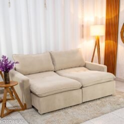 3{%%}Descrição{%%}Sofá Retrátil Luma 2.00m Veludo Premium Bege 37 – Sem Caixa