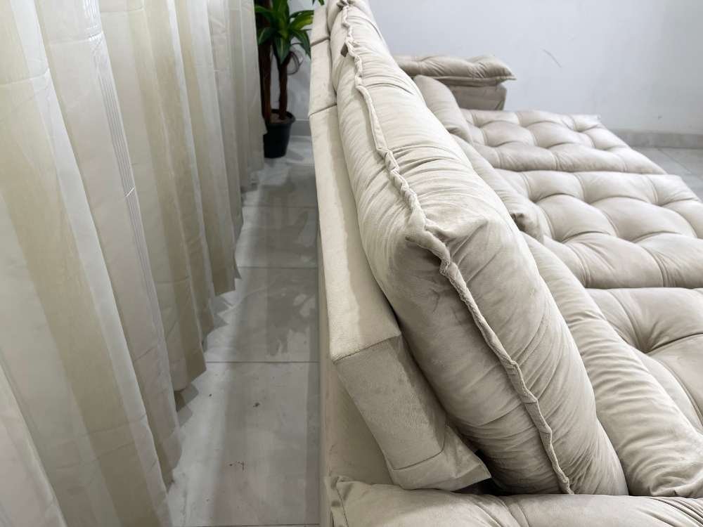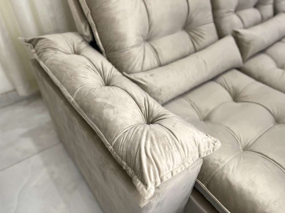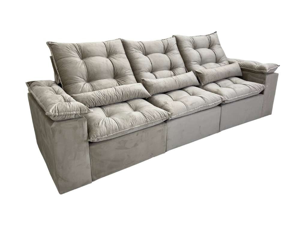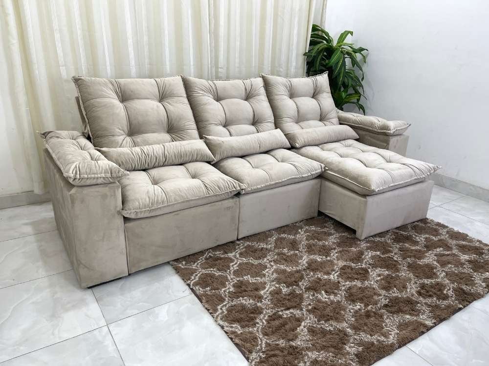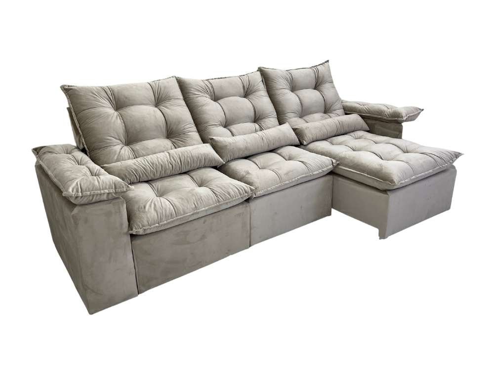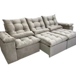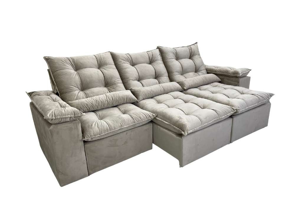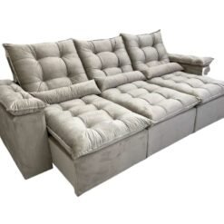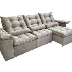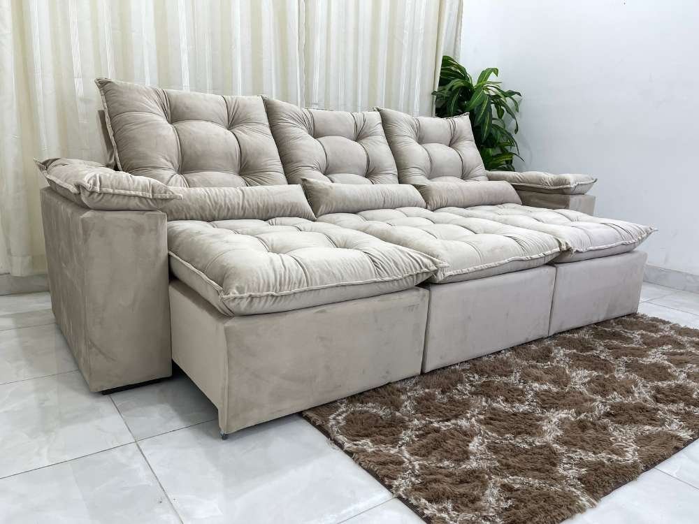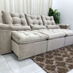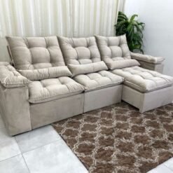 Sofá Retrátil Reclinável Atenas 2.70m – Bege Veludo