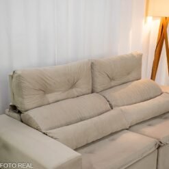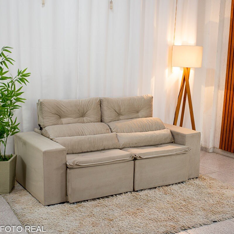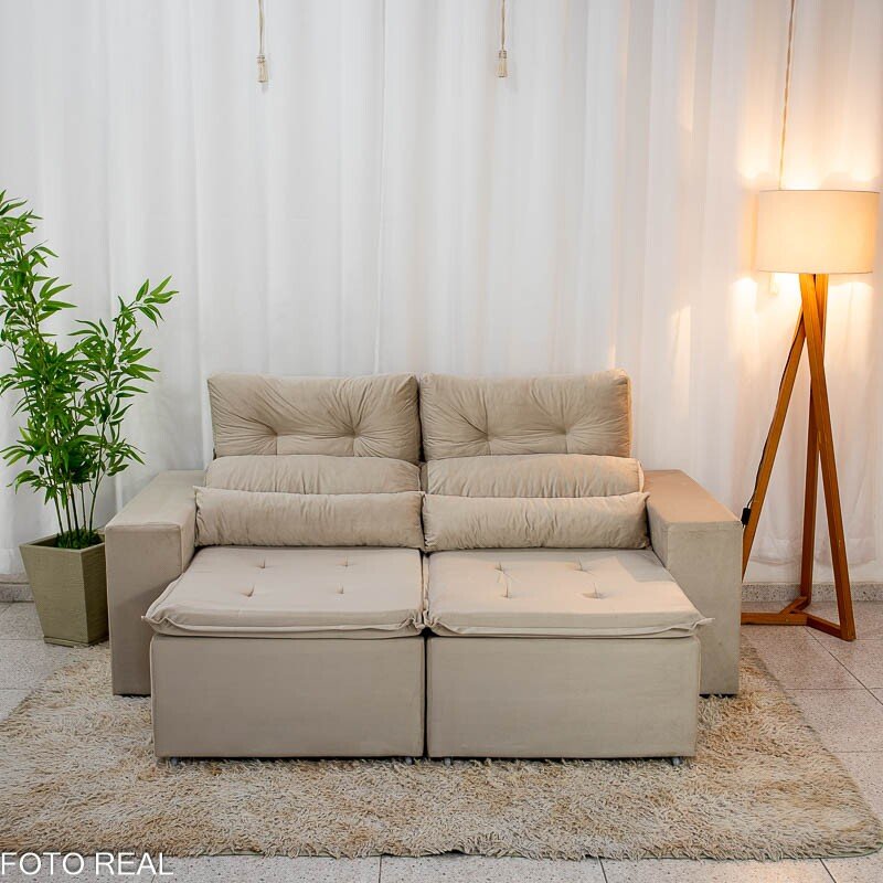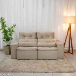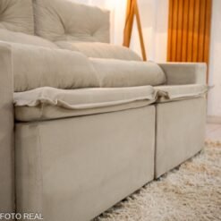 3{%%}Descrição{%%}Sofá Retrátil Reclinável Bia 1.95m Veludo Bege – D28