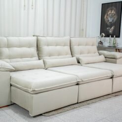 3{%%}Descrição{%%}Sofá Retrátil Reclinável Emanuelly 3.20m Veludo Bege 01 – D28 Soft