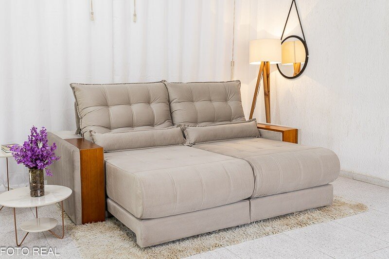 Atenção: Informamos que é normal haver uma abertura entre os módulos dos sofás retráteis. Essa abertura é necessária para evitar atrito entre os módulos durante o movimento de abrir e fechar, prevenindo o desgaste do tecido.