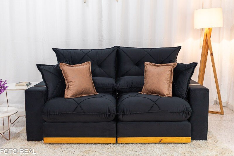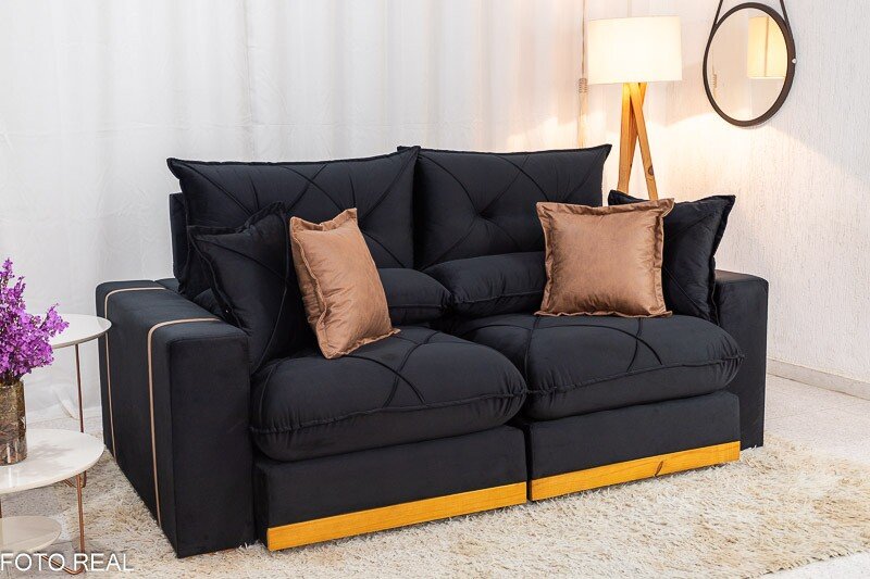 3{%%}Descrição#Benéficos das molas ensacadas{%%}Sofá Retrátil Reclinável Gran Bello 2.00m Veludo Preto – Molas Ensacadas