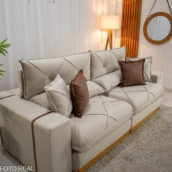 3{%%}Descrição#Benefícios das molas ensacadas{%%}Sofá Retrátil Reclinável Gran Bello 2.50m Veludo Bege Claro – Molas Ensacadas Pocket