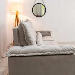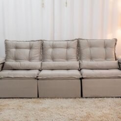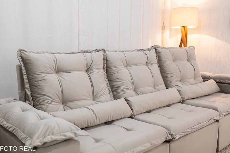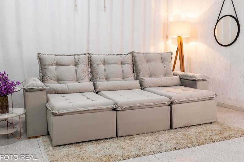 3{%%}Descrição{%%}Sofá Retrátil Reclinável Grécia 2.70m Veludo Bege – Sem Caixa