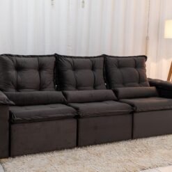 3{%%}Descrição{%%}Sofá Retrátil Reclinável Grécia 2.70m Veludo Marrom – Sem Caixa