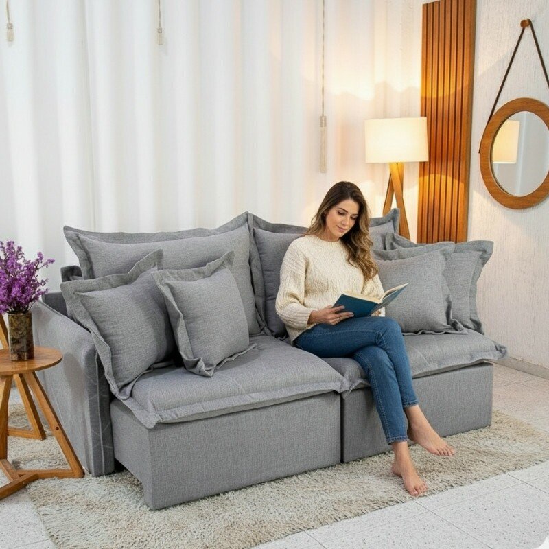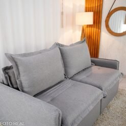 – Tecido linho: O linho possui uma textura naturalmente sofisticada, que confere ao sofá um aspecto elegante e atemporal. Seu visual suave e agradável pode dar um toque de classe à decoração de qualquer ambiente.