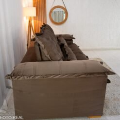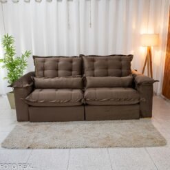 3{%%}Descrição{%%}Sofá Retrátil Reclinável Maldivas 2.50m Veludo Marrom A17 – D28 Pró Aditivada